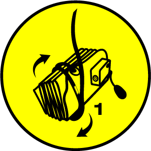 Hold the folded buoy firmly in one hand. Use the free hand to wrap the safety leash exactly once around the buoy and the back end of the CO2 CARTRIDGE.