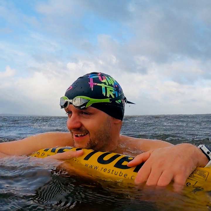 „Ich schwimme gerne in kaltem und eisigem Wasser. Unter diesen extremen Bedingungen muss ich ab und zu eine Pause machen, um mich zu orientieren oder einfach nur meine Atmung zu regulieren. Deshalb begleitet mich die RESTUBE-Sicherheitsboje auf meinem Weg durch die frostigen Wellen."