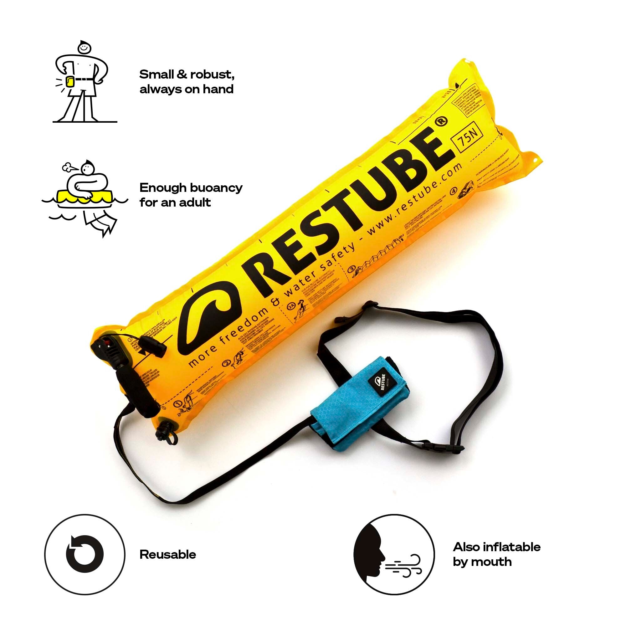 Das RESTUBE Safety System steht für innovative Sicherheitstechnologie, entwickelt in Deutschland mit höchstem Qualitätsanspruch. Die vielseitigen Funktionen sorgen für zuverlässigen und schnellen Auftrieb und erhöhen deine Sicherheit im Wasser entscheidend. Maximale Flexibilität für unbeschwerten Wassersport.