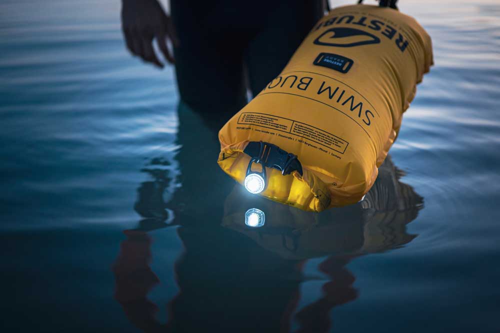 La visibilité augmente la sécurité ! Attache la LAMPE DE SÉCURITÉ LED ÉTANCHE à ta BOUÉE FLOTTANTE à l'aide du clip pratique afin que les autres puissent te voir facilement, même par mauvaise visibilité ou dans l'obscurité.